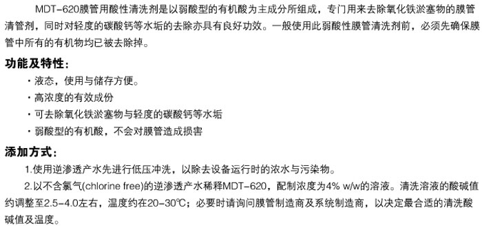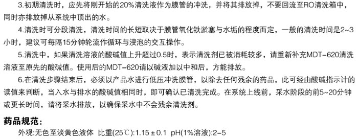 產(chǎn)品名稱: RO膜管清洗劑MDT-620